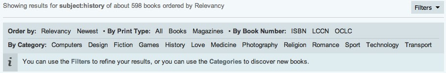 You can choose filters. I chose history in categories to limit my search of "history." As you can see, my results went from 1,565 books to 598 books. Other than adding filters, it's really simple to use!